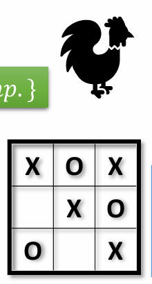 Jogo do Galo - cada jogador joga numa casa na sua vez, ganha quem faz 3 em linha